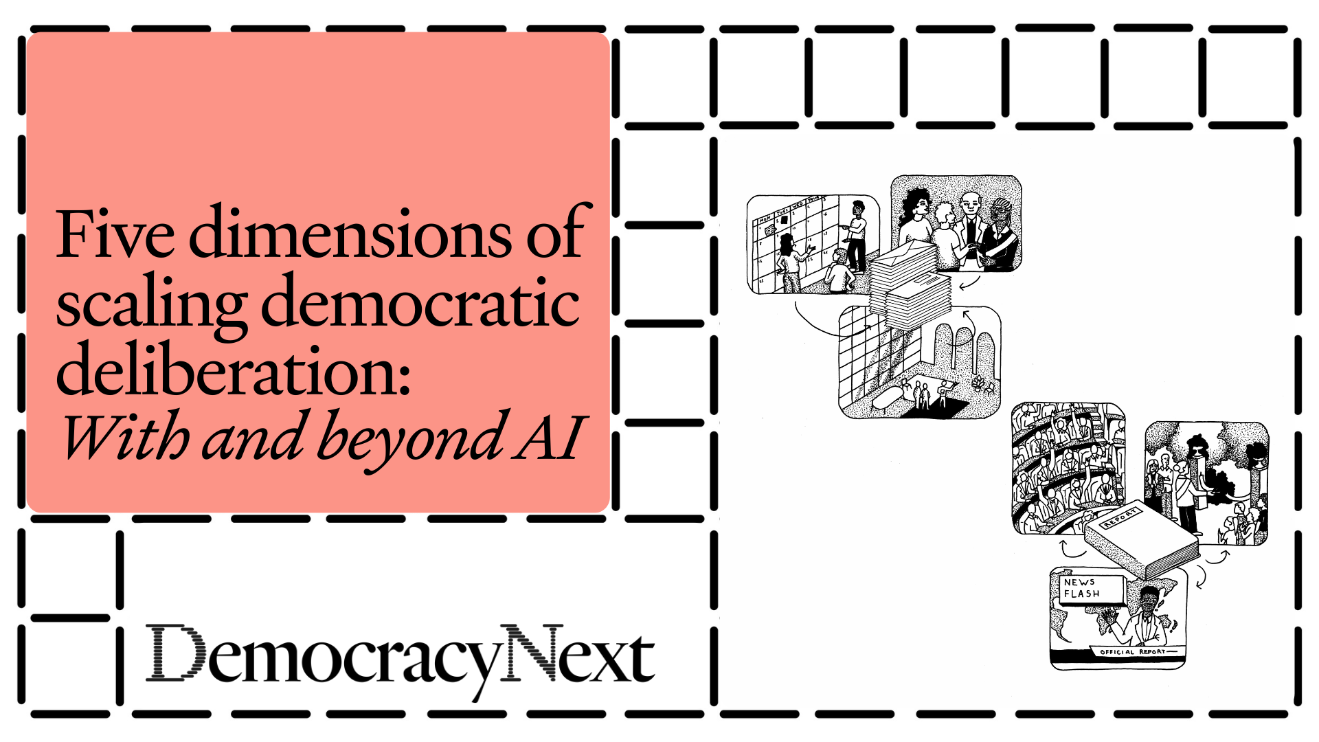 In this new paper by Sammy McKinney and Claudia Chwalisz, we explore: What does scaling democratic deliberation mean, why is it valuable, and what is the role of AI in enabling it?