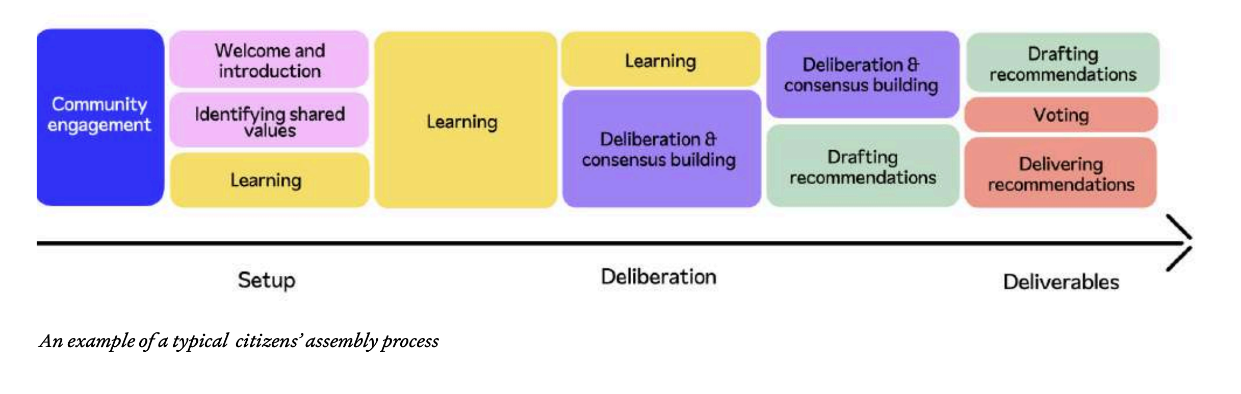 Against this backdrop, there is an urgent need for innovative democratic mechanisms that can effectively counter these authoritarian challenges and offer new ways to give people a more meaningful role in decision making. Citizens' assemblies, a form of deliberative democracy, have emerged as a promising approach. These assemblies bring together randomly selected citizens to learn about contested issues, deliberate, and develop collective recommendations.