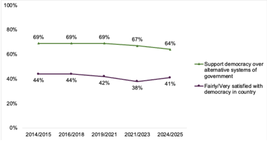 Africa faces a democratic paradox. Whilst citizens across the continent continue to have faith in democratic ideals, their satisfaction with how democracy is working has collapsed over the past decade (Afrobarometer, 2024a).