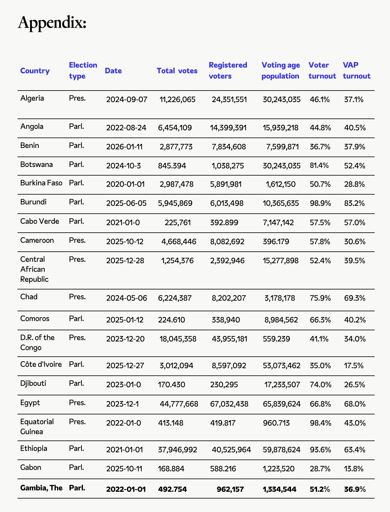 Figure 2: Voter turnout in Africa (%)